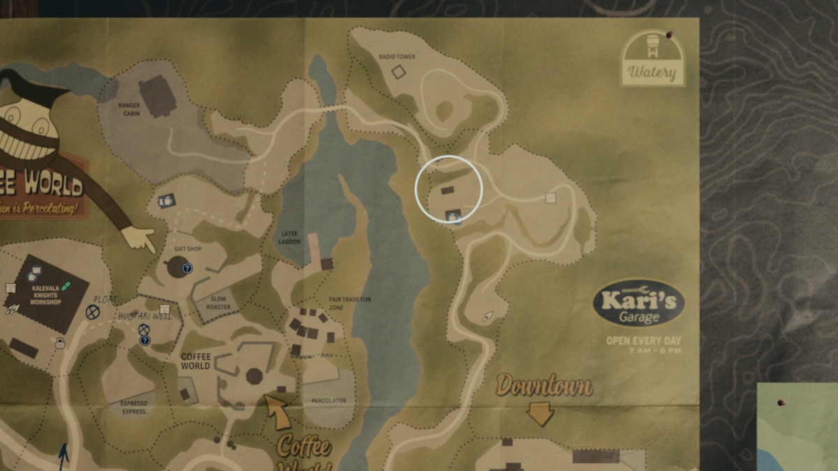 В одном из многочисленных тайников культа в Уотери, расположенном на карте выше, вы найдете арбалет. Это место явно предназначено для стрельбы по мишеням, где цифры вывешиваются и используются в качестве мишеней. Чтобы получить арбалет в Alan Wake 2, нужно подсчитать количество арбалетных болтов и сопоставить их с числами, к которым они прикреплены.