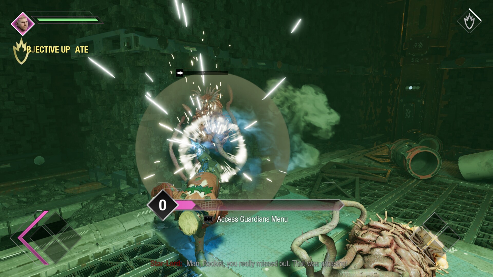 Поначалу может показаться, что о пошатывании не стоит беспокоиться, но он помогает быстро победить более сильных противников. Способности Дракса и стихийные атаки Звездного Лорда отлично подходят для нанесения ошеломляющего урона. Как только эта полоса заполнится, вы можете идти ва-банк в атаке. Для ранней игры я рекомендую специальную игру Star Lord’s Fan the Hammer, которая наносит огромный урон, и изначально доступную способность Гаморы. Это может быть халява, но это будет ваш единственный лучший урон по одиночной цели на протяжении большей части игры, пока она не получит свою максимальную способность ближе к концу.